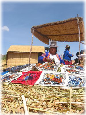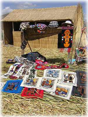 ウロス島はペルーでも名高い観光地で、実際はかなりツーリスティック。なかには「お土産島?」と思ってしまうぐらい、お土産以外に何もない島もある |