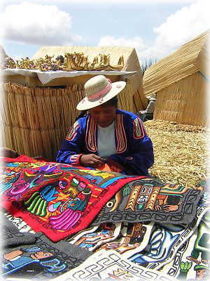 このあたりのお土産物はすべて手作り。インディヘナの女性が照りつける太陽のなか、せっせと手作業しています。お姉さんは細かい刺繍の入ったクッション・カバーを作っていました |