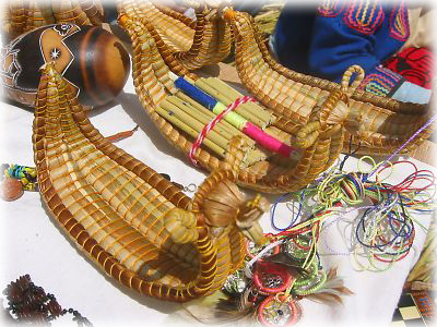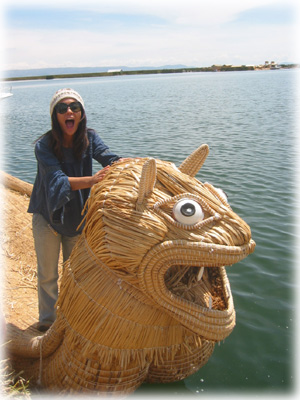 ![]() お土産のひとつに、トトラでできた小さな船がある。ダンナは「欲しい!」と絶叫したけれど、妻は「いらない!」と一蹴したもの |