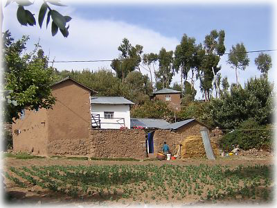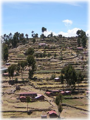 なんだか懐かしいような、そんな島の風景。わずかな土地を段々畑にしているのはインカ時代から続く知恵、でしょうか |