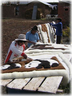 この家のお父さんはじゅうたん屋さん。アルパカの毛でできたふわふわしたじゅうたんをひとつひとつ手作業で作っていました。よくお土産屋さんとかで見るのは、こんなところで作られていたのね |