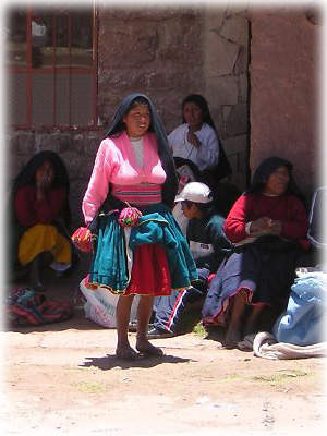 タキーレ島のおばちゃん。この島でもやっぱりみんな編み物上手。老若男女(男性も!)、みんな立ち話をしながらせっせと編み編みしておりました |