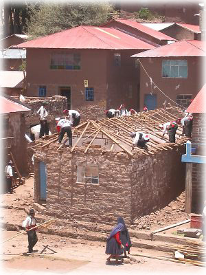 広場の脇では、古い家を撤去する作業が行われていた。この島は共同体としての機構がキチンとしていて、こういった土木作業は村人で力を合わせて行う。物価もすべて定価で、実に民主的な島なのだそう |