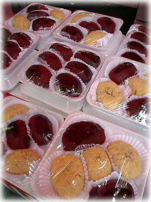 左のおはぎほか、日本の和菓子がいっぱい売っているリベルダージの商店にて。私の隣にいるおばちゃんはめちゃめちゃ普通に日本語を話すのだが(見た目も日本人まんま!)、日本には一度行っただけだそう。いやー、どこから見ても日本人なのでビックリです |
