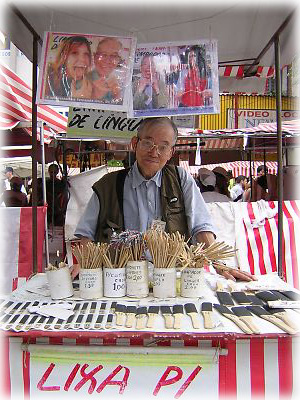 「舌掻き」というアイテムを売るおじちゃん。なんでもこれで舌を掻くと、口が清潔になるのだとか。秋葉原の店頭実演を思い出しました |