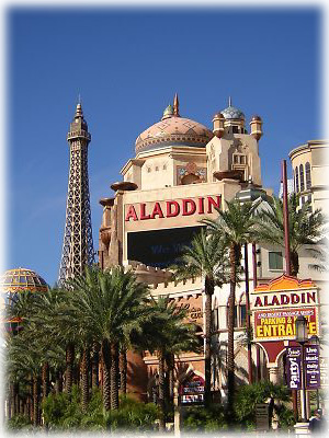 ラスベガスが楽しみだったひとつに、ヘンテコなホテルを巡ることがあった。こちらは2000年夏にオープンしたばかりの「アラジン」。もちろんアラビア風のホテルです |