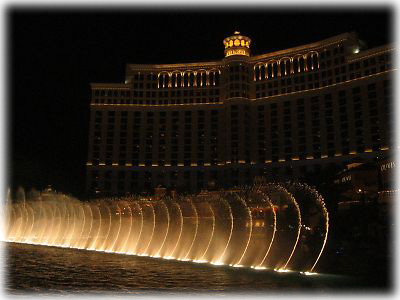 ![]() ベラッジオの前は巨大な池になっていて、そこで毎日頻繁に噴水ショウが行われている。「噴水ショウ?」と初めはなんとなくピンとこなかったけれど、実物を見て納得。噴水もアートなんですな。写真では伝わりそうもないけど…… |