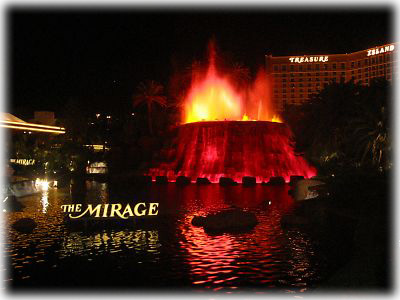 ![]() こちらはホテルの前に火山があるので有名な「ミラージュ」。ただいま大噴火中。所要は10分程度でひとつのショウが完結。このショウもベラッジオのものも、ストリップ(ベガスのメイン・ストリート)沿いにあって、見学無料。うーん、ラスベガスは懐が深い |