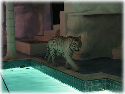![]() ミラージュのホテルで飼われている白い虎。やっぱり白い虎って神秘的でステキだ。普段はベガスの有名なショウ「ジークフリート&ロイ」に出演していて、お休み中は部屋で観光客からフラッシュの嵐。ごくろうなことです |