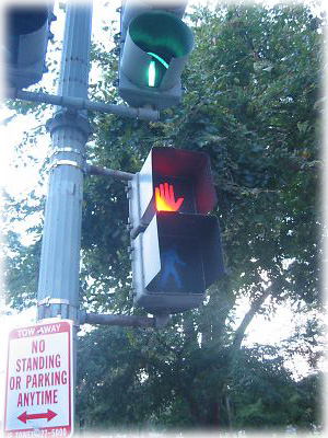 そうそう、アメリカの歩行者用信号は青は日本と同じだけど、赤は手のひらで「待て」のポーズ。戦後、信号を作るときにアメリカからの指示はなかったのでしょうか。実は日本のものは少数派で、世界各国このパターンが多い |