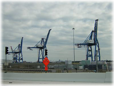 ![]() ワシントンDCのあとは海を見ながらドライブ。といってもビーチではなく、貿易港という感じ。荷物を積み上げるこんなでっかいクレーンも設置してある |