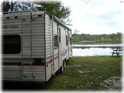 ![]() このキャンプ場は駐車場として停めている人も多く、なかにはこんな小屋がついている人まで。小屋の中にはちゃんと冷蔵庫まであって、このまますぐ住めそう。アメリカ人にとってはセカンドハウス感覚なのでしょう |