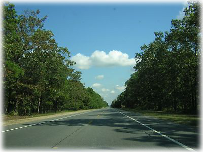 ![]() いざ、ニューヨークへ向けて出発! と走りだしたものの、緑の森と車のいない道が続くのみ。気持ちいいけど、はてこの先に本当に摩天楼はあるのだろうか……? |