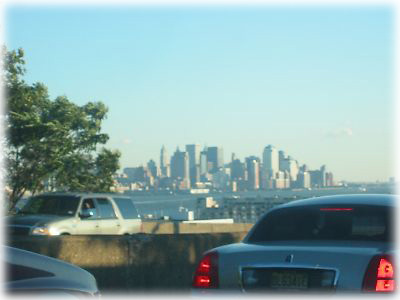 ![]() 「あ、見えた! マンハッタンが見えたよぅ!」とおおはしゃぎした瞬間。ものすごい渋滞の向こうに、摩天楼が霞みながら、でも確かに見えます。ああ憧れのニューヨーク……ようやく見えた感激といったら! |