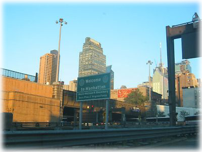 ![]() 「Welcome to Manhattan!」の看板に迎えられ、いざ上陸。ああ長かった道もいよいよゴールなのね……と思うとウレシイやら寂しいやら |
